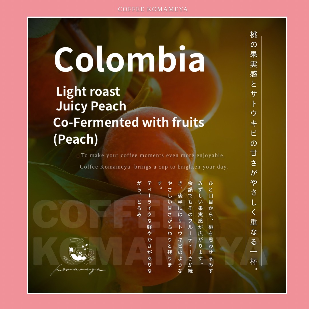 当コーヒー豆は、ピーチ(桃)を思わせる明確な果実感と、サトウキビ(ケインシュガー)のような自然な甘さが重なり合う、華やかで飲み心地の良いロットです。
