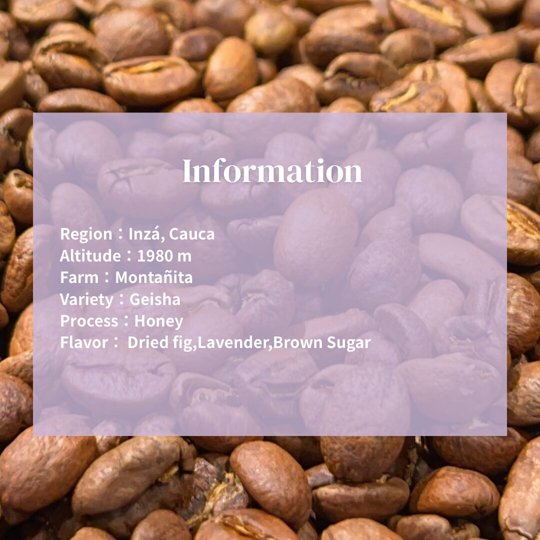 コロンビア・ゲイシャといえばウォッシュドが主流ですが、本ロットはハニープロセスという精選方法で仕上げられており、市場でもあまり見かけない希少なスタイルのゲイシャと言えます。