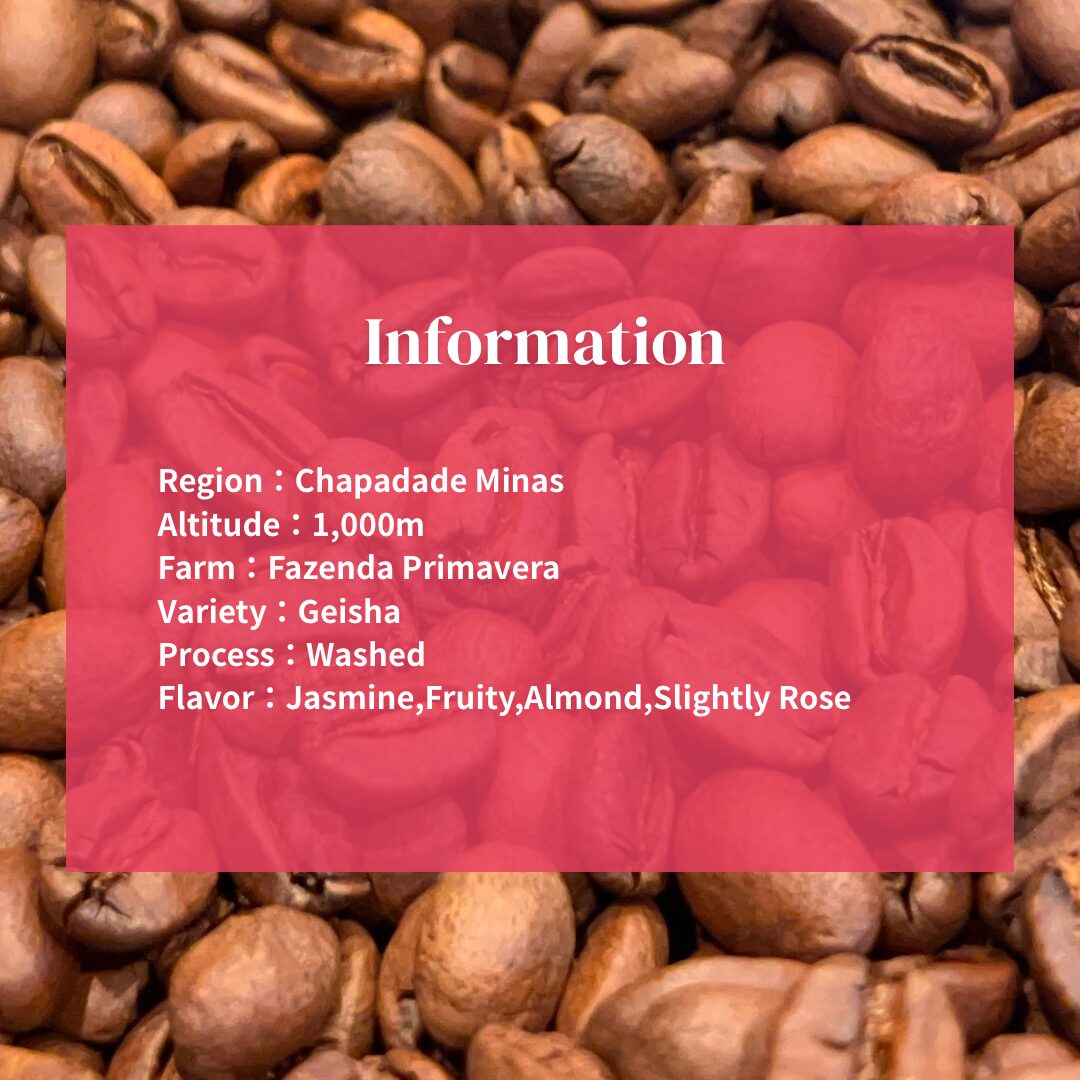 ブラジルといえば、ナッツのような香ばしさを思い浮かべる方も多いかもしれませんが、本ロットはそのイメージを良い意味で裏切る、ゲイシャらしい濃厚で繊細なフローラルの香りが際立つコーヒーです。